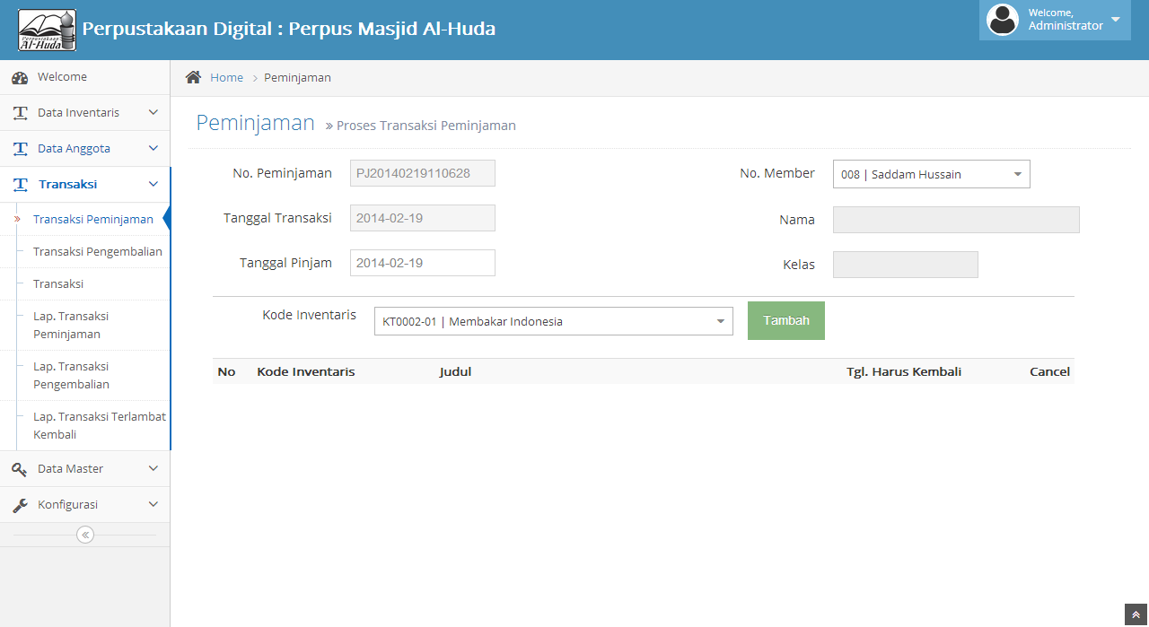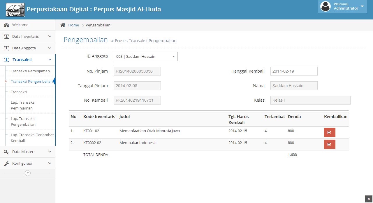 2. Transaksi Pengembalian